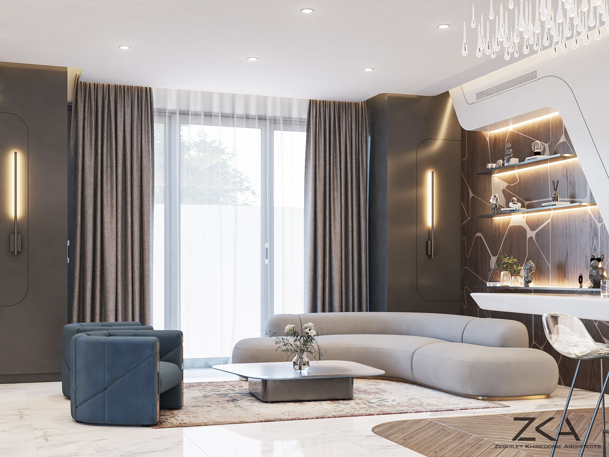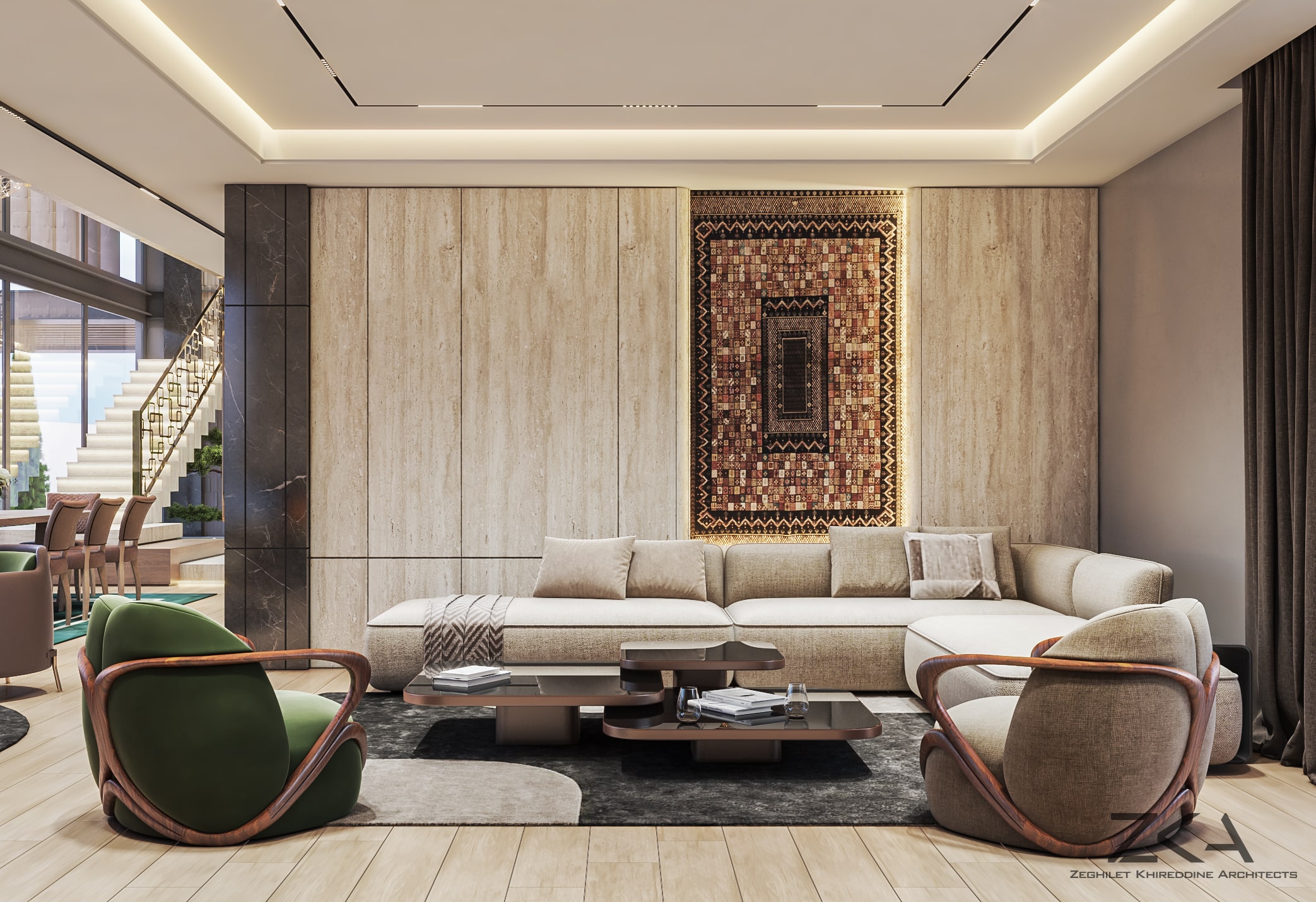 Embark on a visual journey through our opulent Omani villa. Immerse in a symphony of interior styles, each space a masterpiece. Marvel at the curved line artistry of our formal reception, a testament to luxury redefined..